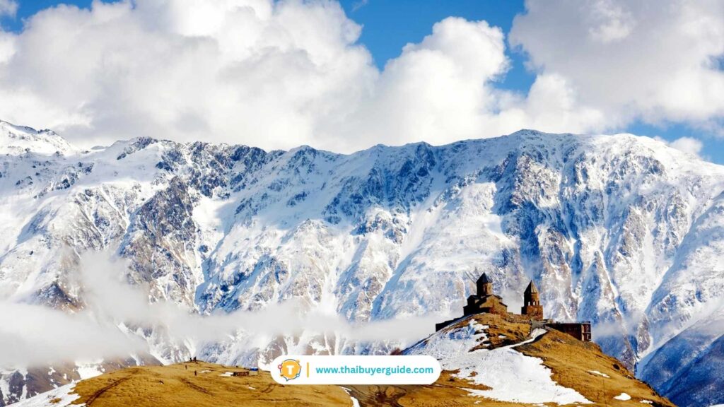 - คาซเบกี (Kazbegi): โบสถ์เกอร์เกติ วิวภูเขาหิมะ