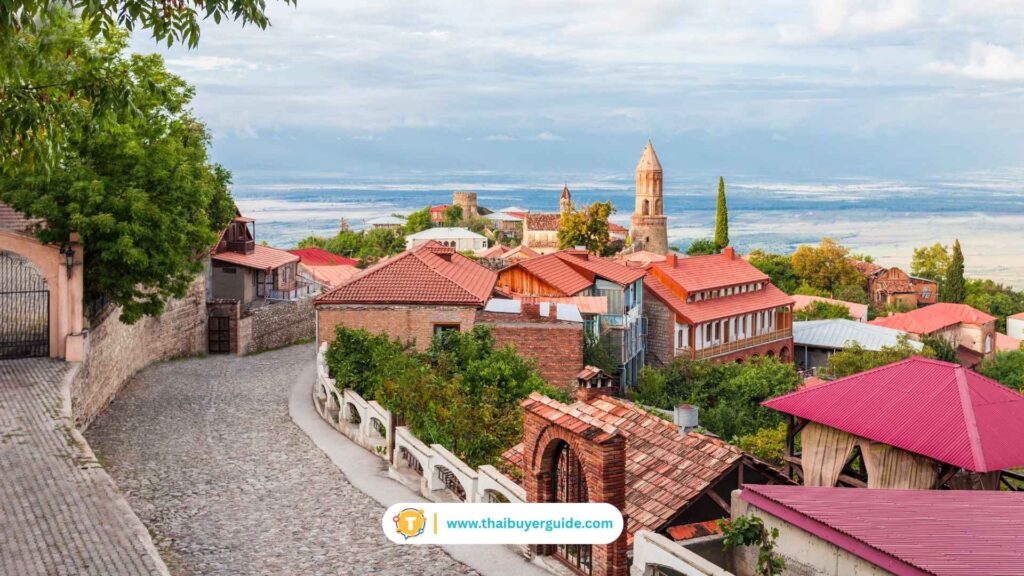 เมืองเล็กแสนโรแมนติกในแคว้นคาเคติ (Kakheti) เมืองไวน์ของจอร์เจีย เดินเล่นบนกำแพงเมืองเก่า จิบไวน์พื้นเมือง ชมวิวหุบเขาอลาซานีสุดชิล